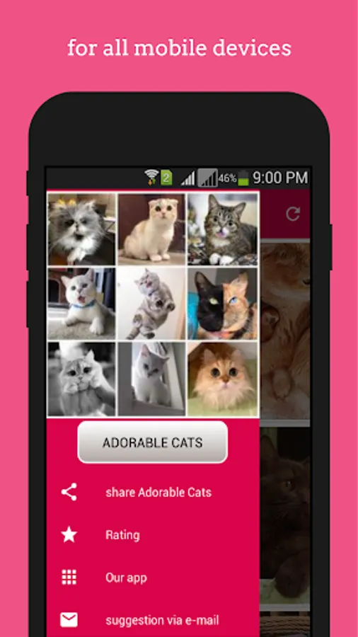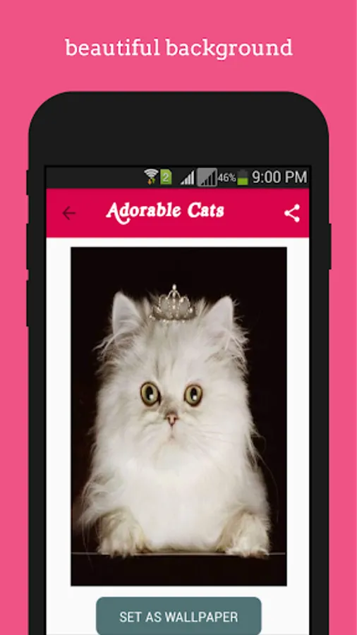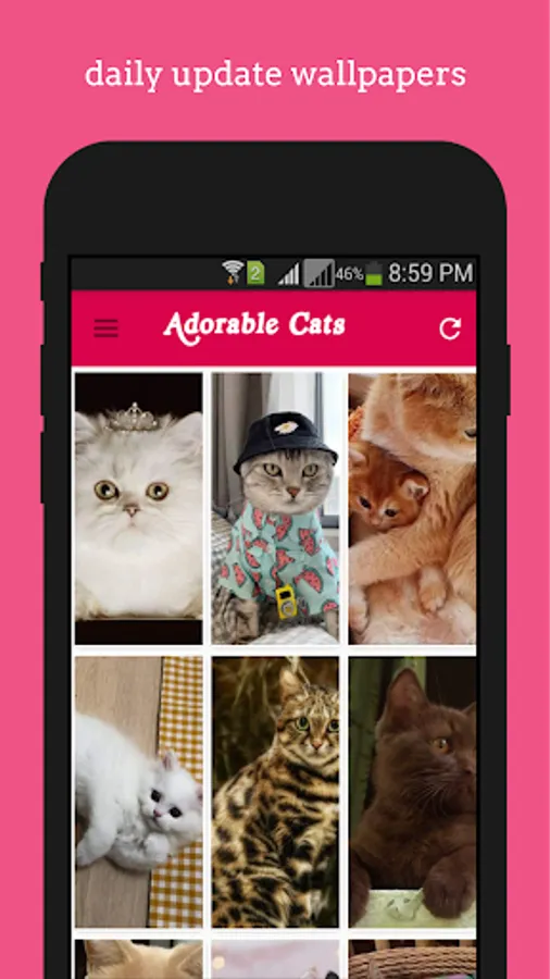 If you need many varieties of Cats wallpapers, you've come to the right place. This app consist of many varieties of cats Wallpaper Design. Following are the features of this app :
