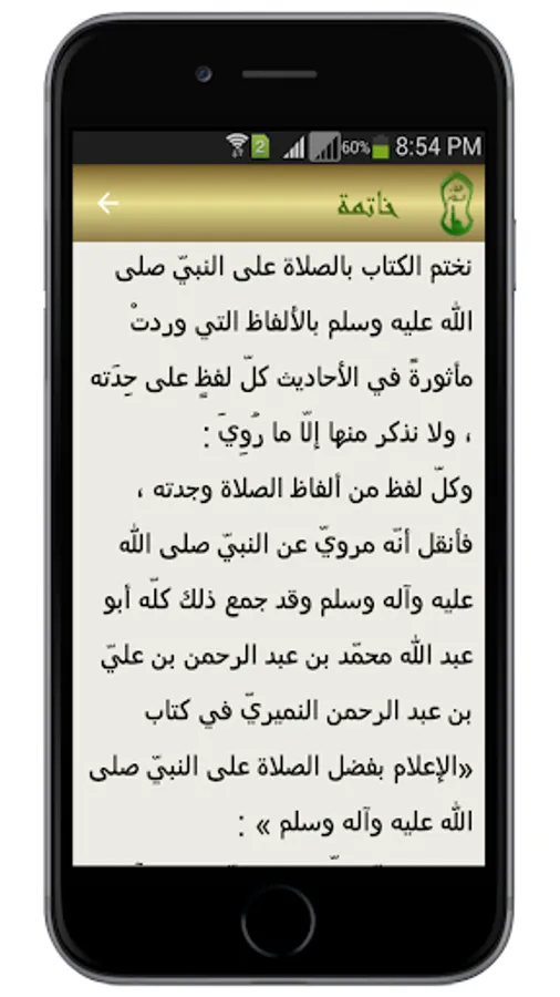 نختم التطبيق بالصلاة على النبيّ صلى الله عليه وآله بالألفاظ التي وردتْ مأثورةً في الأحاديث كلّ لفظٍ على حِدَته ، ولا نذكر منها إلّا ما رُوِيَ