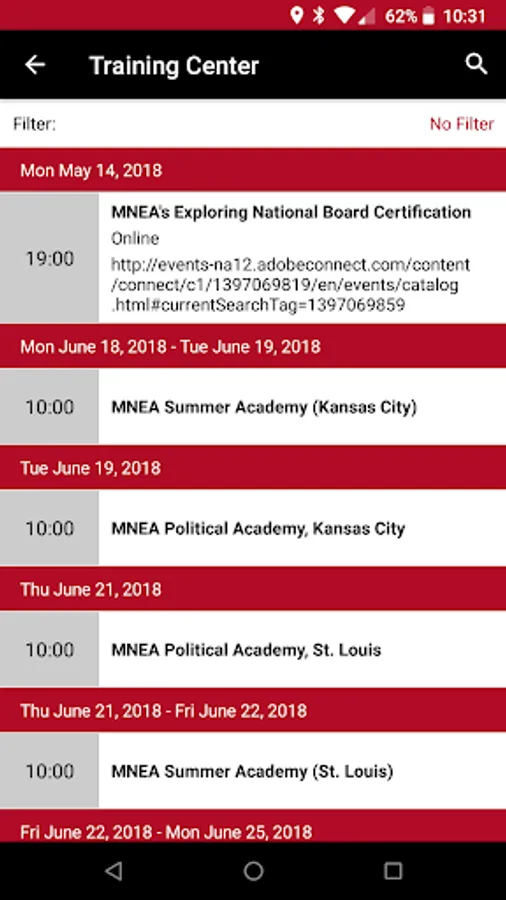 The Missouri NEA mobile app is a resource for MNEA members and the public. App users have easy access to MNEA support. If you are a member, call or email your UniServ Director. You can look up MNEA events and important dates and add them to your personal calendar, register for training online, carry an MNEA e-membership card or purchase MNEA image items.