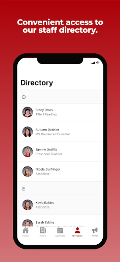 The app’s directory houses contact information for all Cardinal staff members, so parents have quick access to staff email addresses.