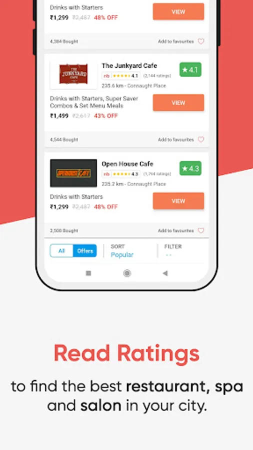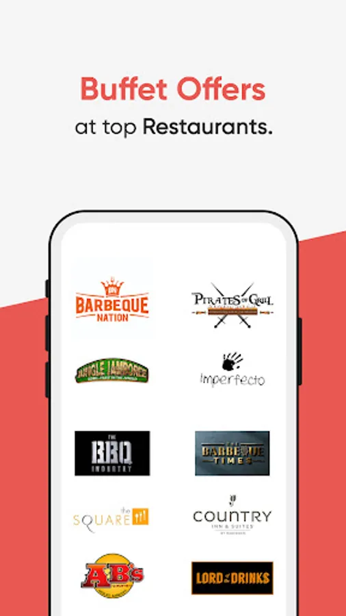 ● Over 8 million people across India use nearbuy as the best restaurant app. Search for your favorite buffet, cafe, restaurant nearby and find terrific restaurant deals & discounts: Barbeque Nation, Dominos, PIzza Hut, KFC, Cafe Coffee Day (CCD), Burger King, McDonald’s & many more