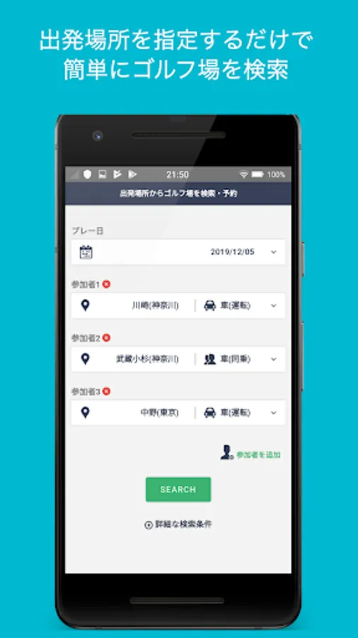 ・ You can easily search for a golf course simply by specifying the departure place of the golf participant.