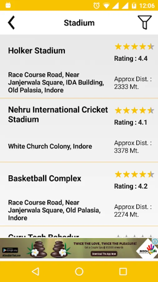 - It shows the Complete address, rating and Approximate Distance of searched places from your current location,