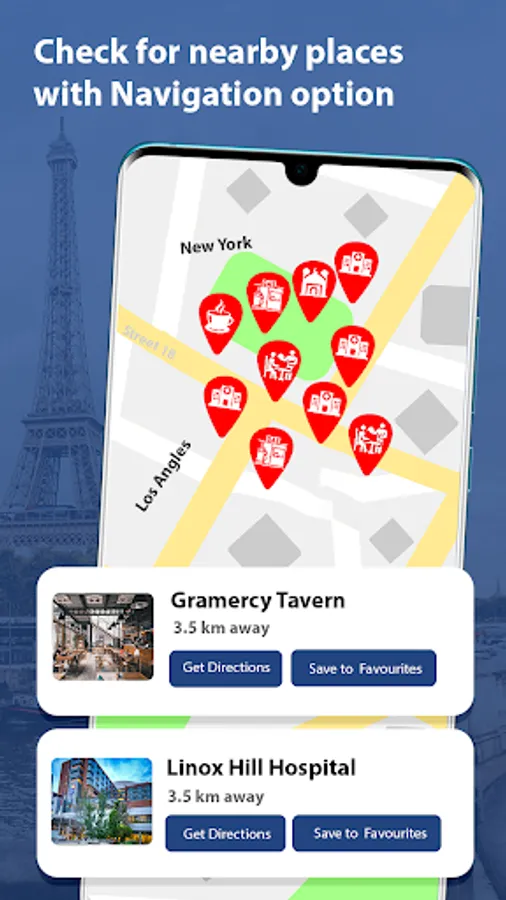 Near Me Places app gives quick access to navigate nearby places finder like nearby hospital around me and near me places around the world at any nearby explorer place.