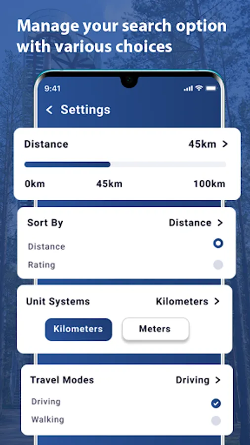 π₯ Using nearme places app You can also choose between miles and kilometres as a distance unit.
