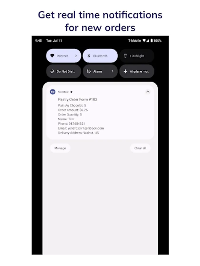 • Get real-time notifications for new orders