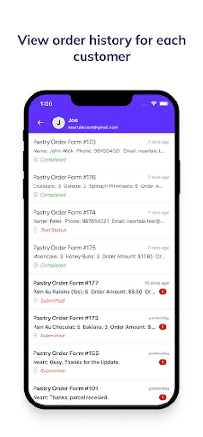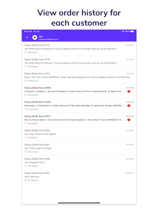 • Access order history for each customer