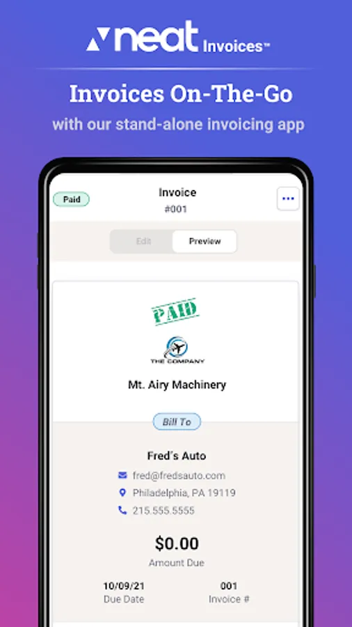 The Neat Mobile App requires an active NeatBooks®, NeatFiles™, or NeatInvoices™ subscription.