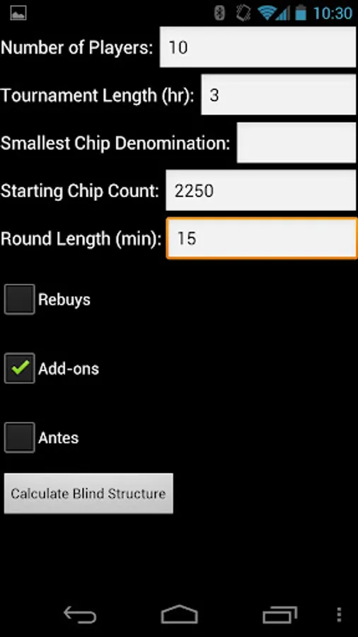 - Blind Wizard to auto populate blind schedule given length of game desired