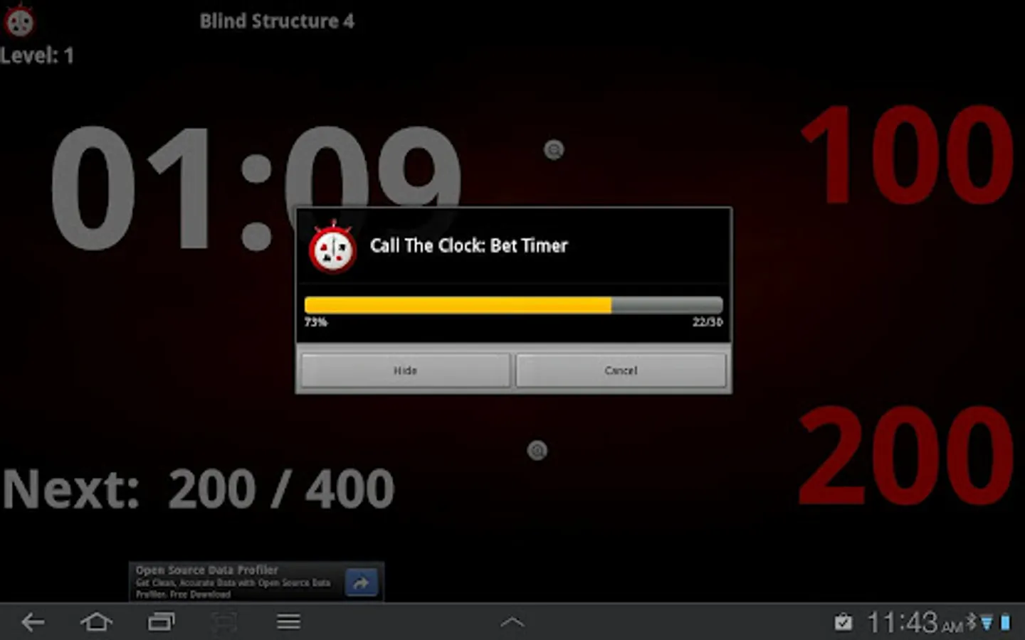 A feature rich and simple poker timer that helps you manage a Texas Holdem tournament of any size. The clock timer supports small and large screens (including portrait or landscape views) with an elegant and large display that allows anyone in the room to view. Customize the alert ringer or better yet, have talking poker timer say the blind schedule out loud (in multiple languages) for people who can't see the screen. Talking Poker Timer allows you to customize the blind schedule with ease for any type of Texas Holdem Tournament. Configuring a new schedule is made easy with the "new" Blind Wizard that figure out the schedule for given the length of tournament desired.