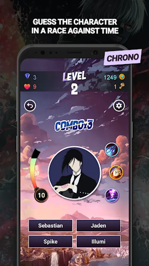 In the chrono mode, test your intuition and the depth of your knowledge about characters in a race against time. You need to guess as many manga characters as possible from their minimalist icons before time runs out. Collect rewards along the way and fight to score the highest as the icons increase substantially in difficulty!