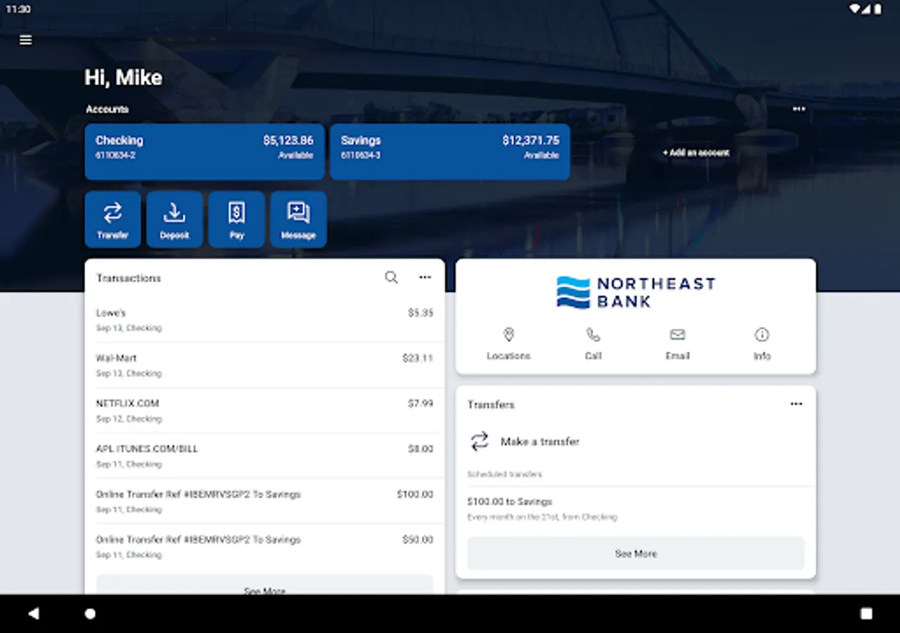 My Northeast Bank - It’s fast, secure, and makes life easier by empowering you with the tools you need to manage your accounts at Northeast Bank (MN) accounts. Northeast Bank mobile banking customers who do NOT use Business Online Banking or Cash Management.