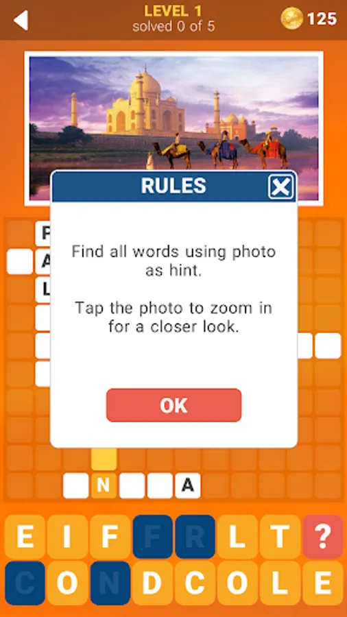 Each crossword contains words that are associated with the photo above it. Guess the words and solve all levels! Tap the picture to zoom in for a closer look. Some answers are obvious, others are quite tricky. This game is an excellent exercise for your brain!