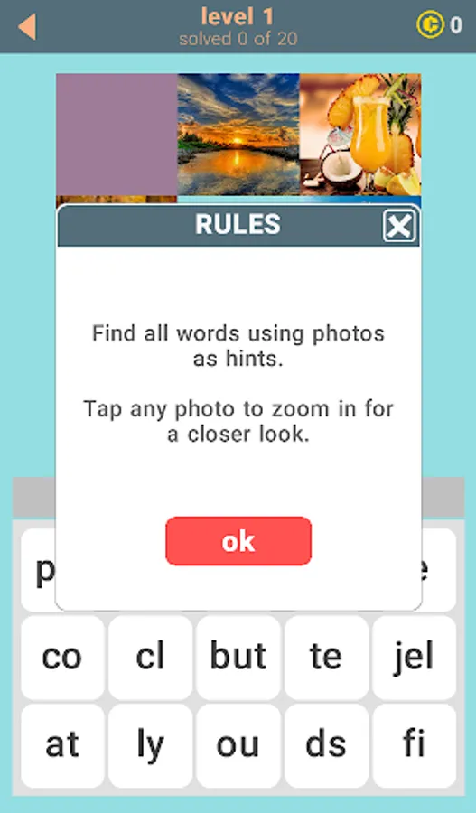 Two words per photo. 20 words per level. 580 words in the game. Can you find all of them? Sometimes you have to think beyond the obvious. Good luck!