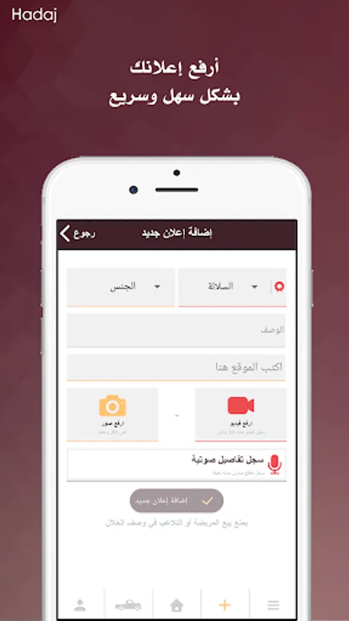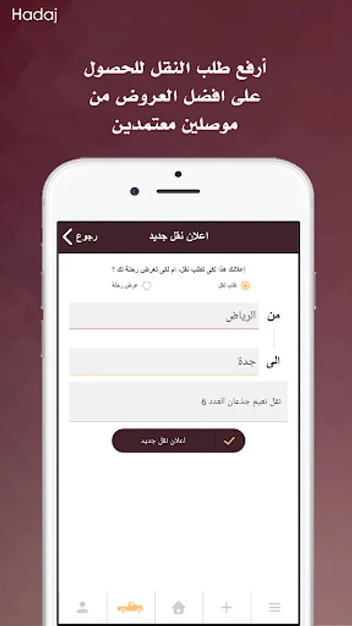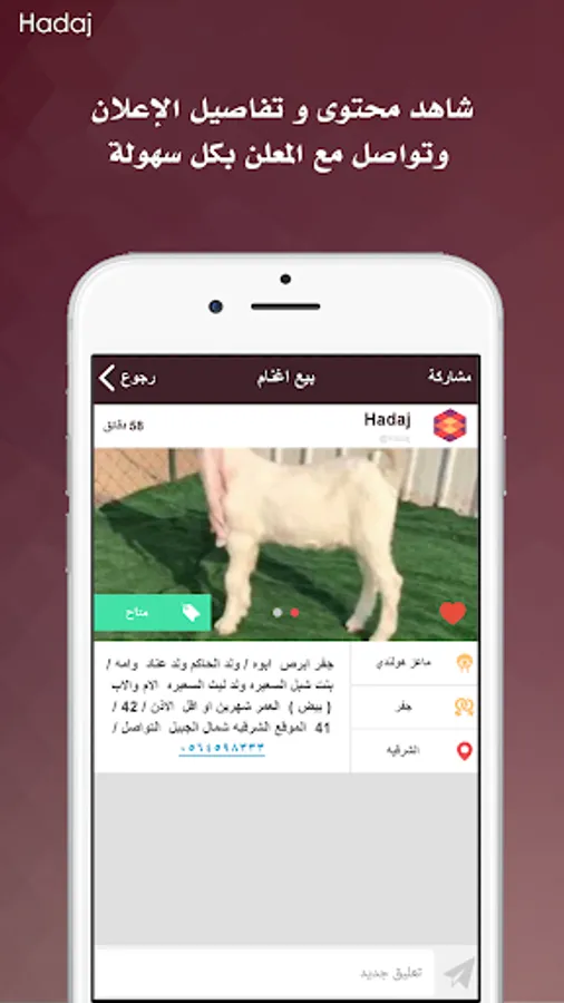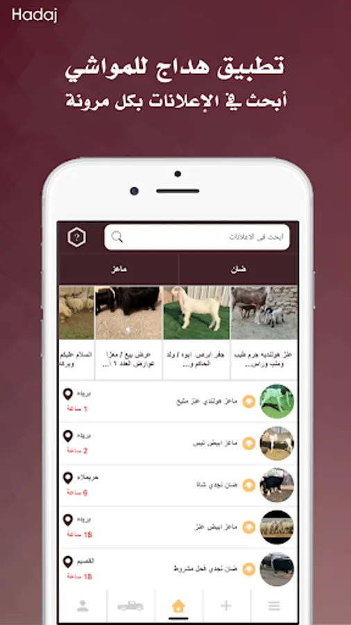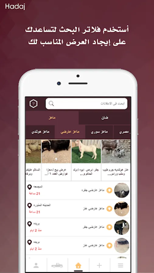 “Hadaj” is a simple communication way between buyers, sellers, and carriers in the field of livestock Transportation. “Hadaj” enables you to save your time in searching for different sheep or goat types with different criteria and get what you need in an easy way.