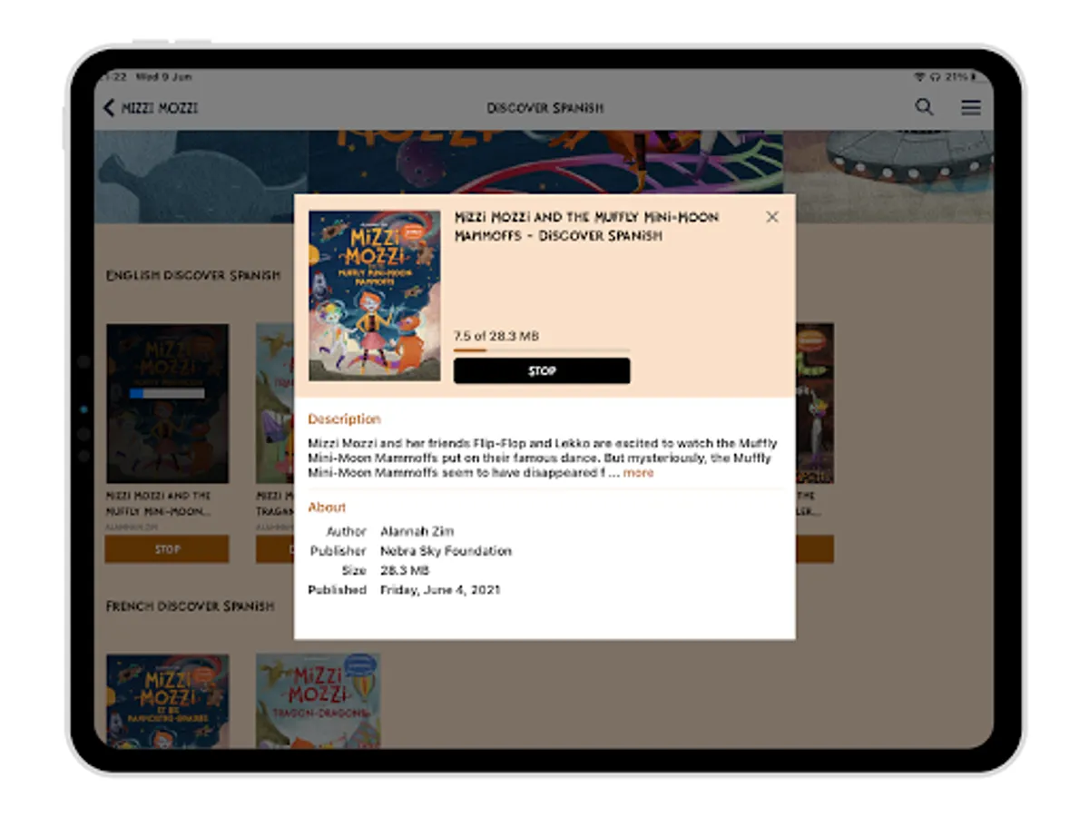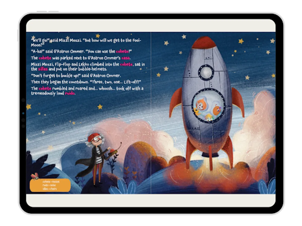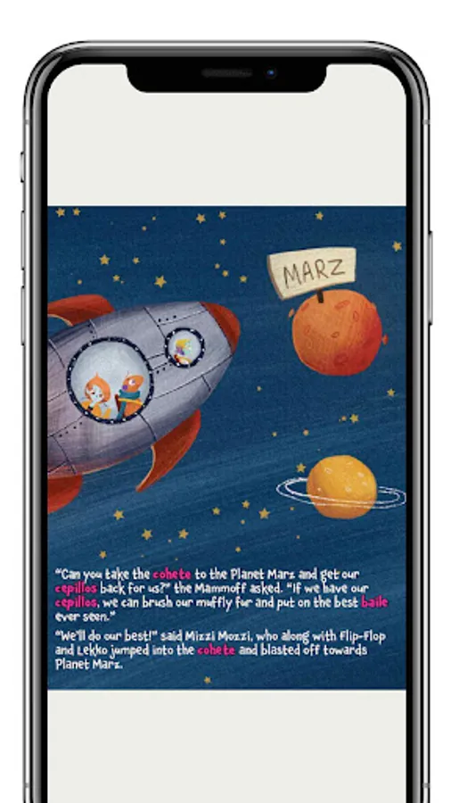 Every Mizzi Mozzi book introduces around twenty foreign learning words: just tap on a learning word to hear the spoken audio.