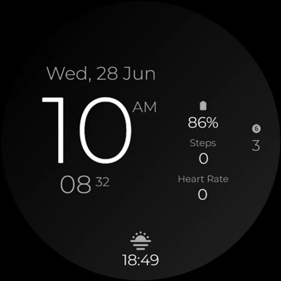 Stay in tune with your fitness goals as Shadowfade effortlessly displays your step count, heart rate, and battery percentage. Whether you're tracking your daily activity or monitoring your health, this smartwatch face keeps you informed at a glance.