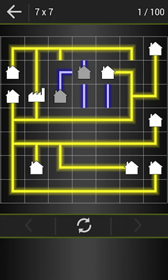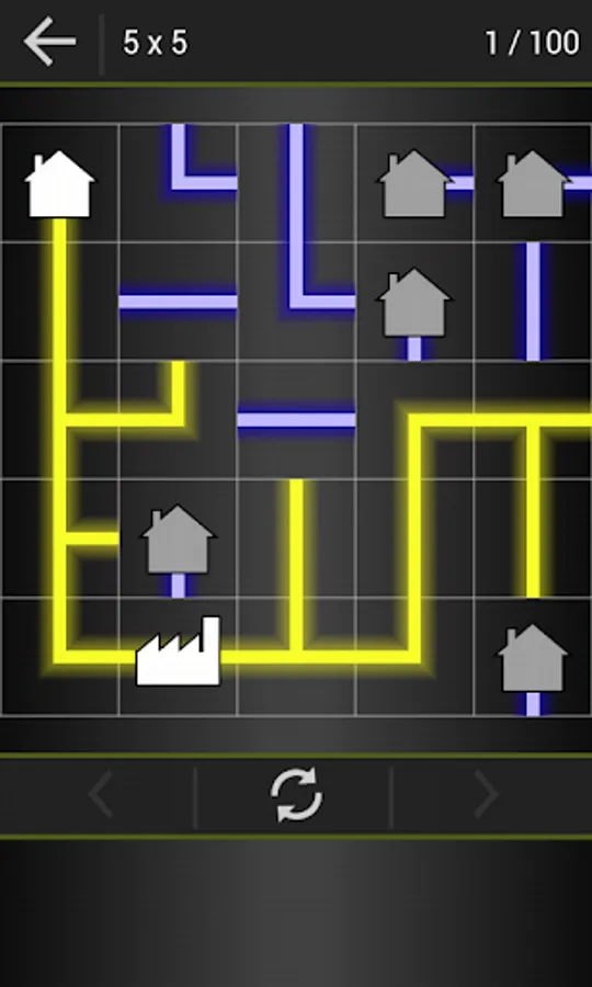 Your goal is to connect every house on board to power factory. Follow power line with your finger, start from power factory, rotate line and let electricity flow to all houses.