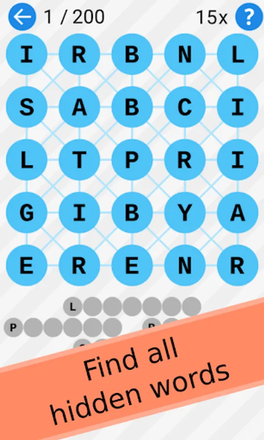 Guess and find all hidden words. Touch letters with your finger to gather them. Find correct words to clear board.