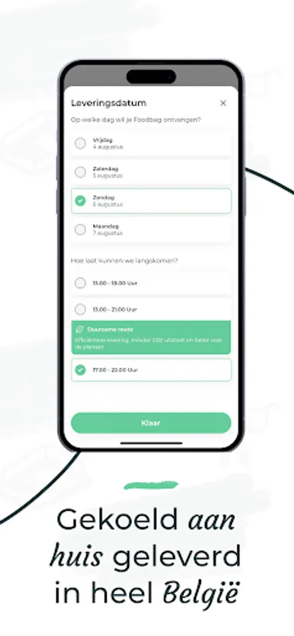 Schedule your Foodbag delivery. Choose a delivery day and time slot that suits you best.