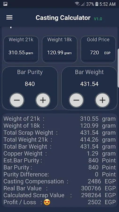 Casting Calculator Screenshots