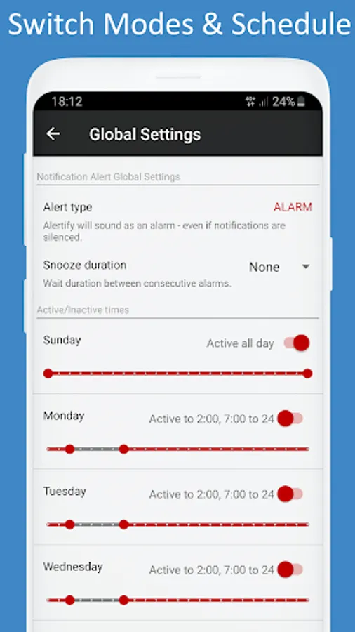 When switching between NOTIFICATION & ALARM modes, volume controls for the respective mode will show briefly.