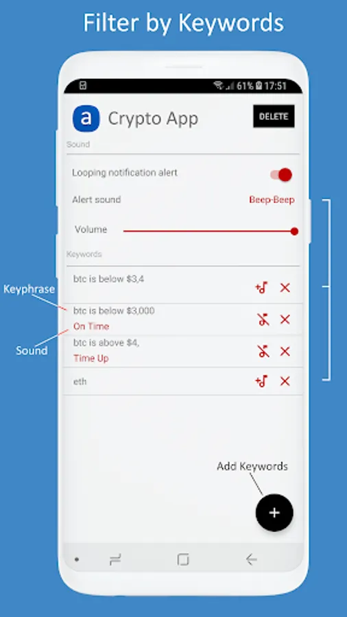 Alertify plays a customizable sound alert upon receiving (specific) notifications from other apps based on keywords within each notification.