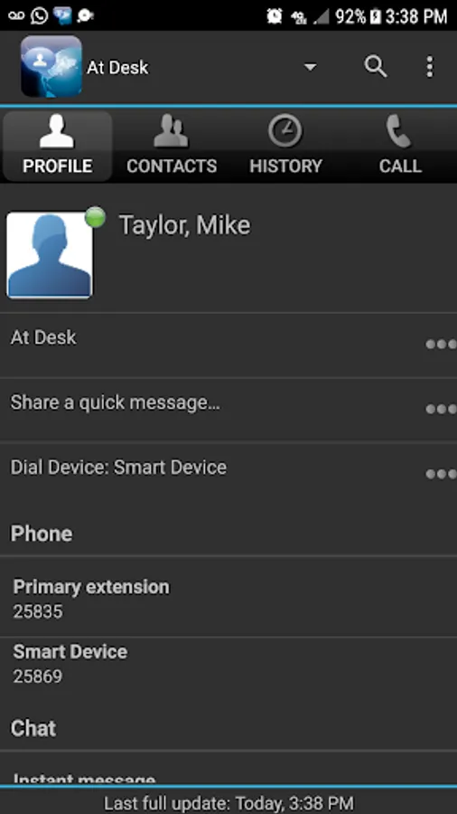 "UNIVERGE MC550 application for Android allows you to seamlessly stay in touch with your work place by putting voice and instant message tools in one place. You can quickly find a co-worker or personal contact, see their status, and initiate communication with the touch of an icon. You can change your own status and view your missed calls and instant messages. You can dial an extension, return calls, and send IM’s with ease.