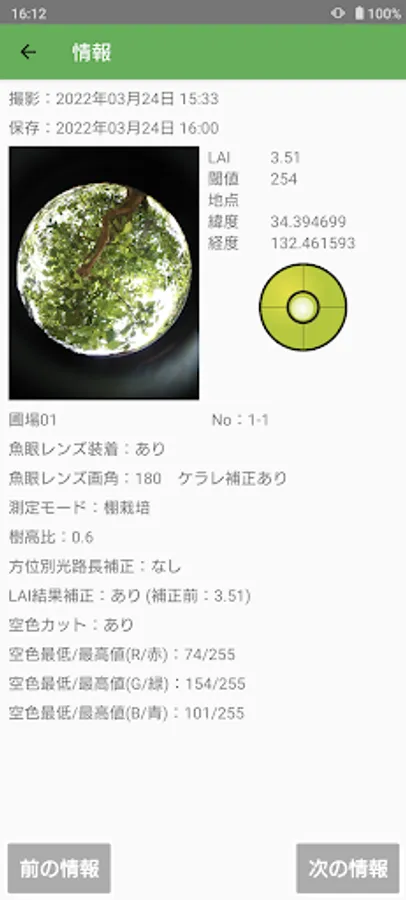 It also supports the use of a fisheye lens, and if the camera installed in the smartphone cannot shoot the entire subject, you can estimate the leaf area index of the entire subject by wearing a fisheye lens and shooting.