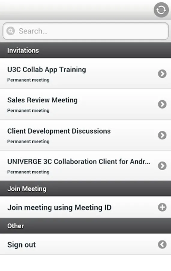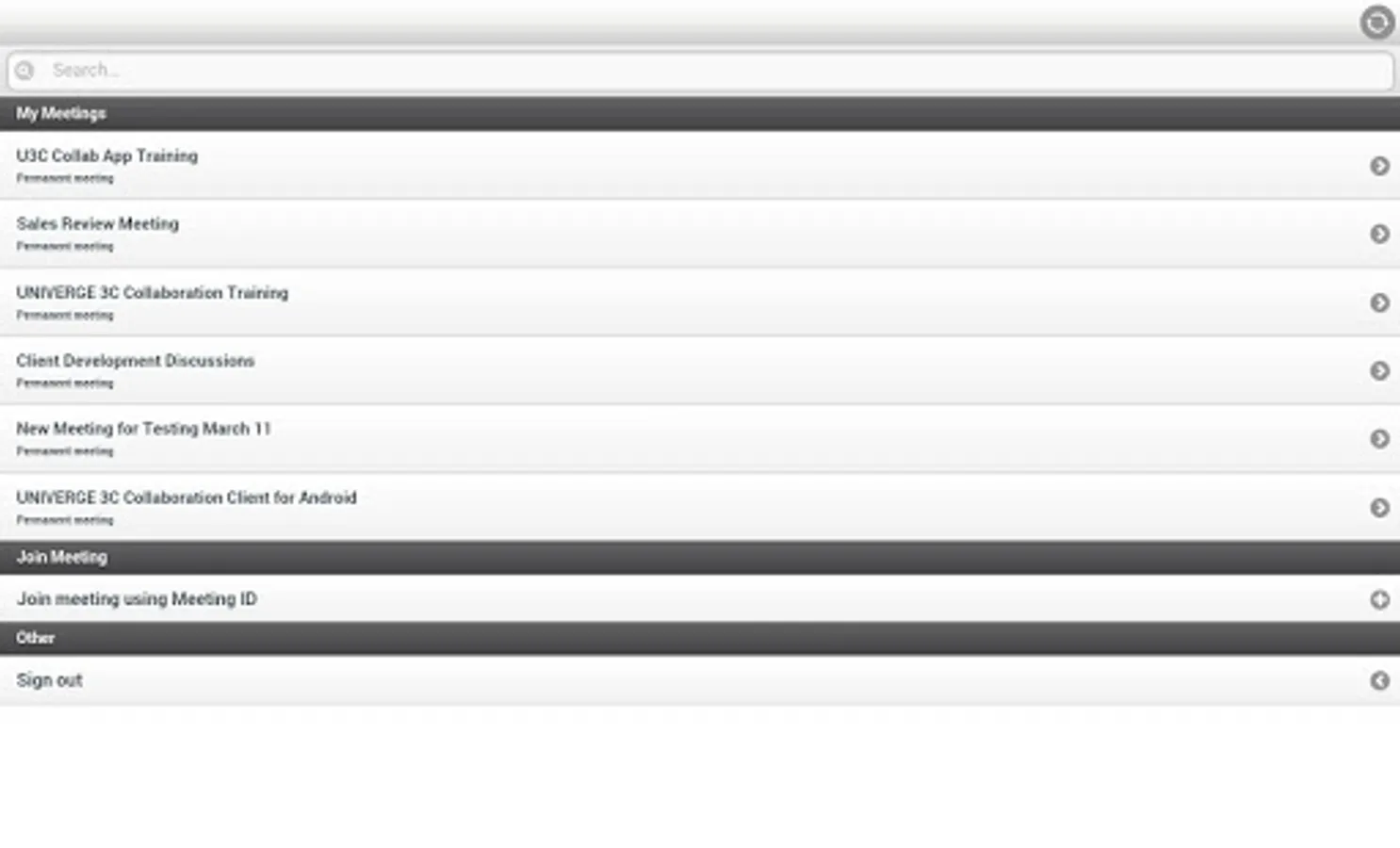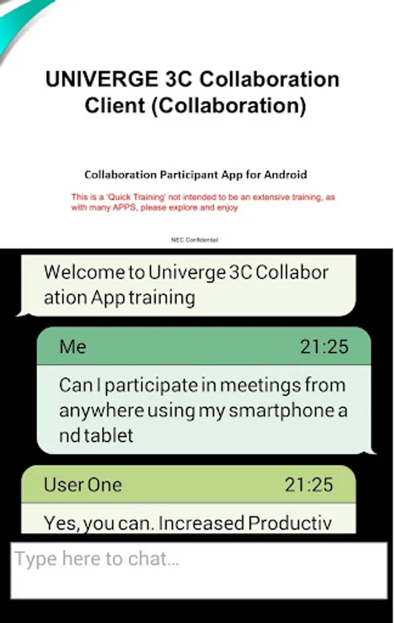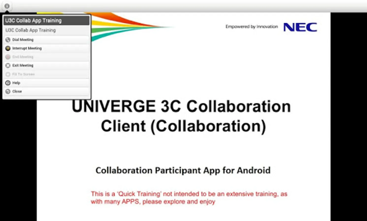 The UNIVERGE 3C Collaboration Client allows you to attend and participate in UNIVERGE 3C Collaboration meetings from anywhere. Also, hosts can start, interrupt and end planned meetings from their mobile devices.