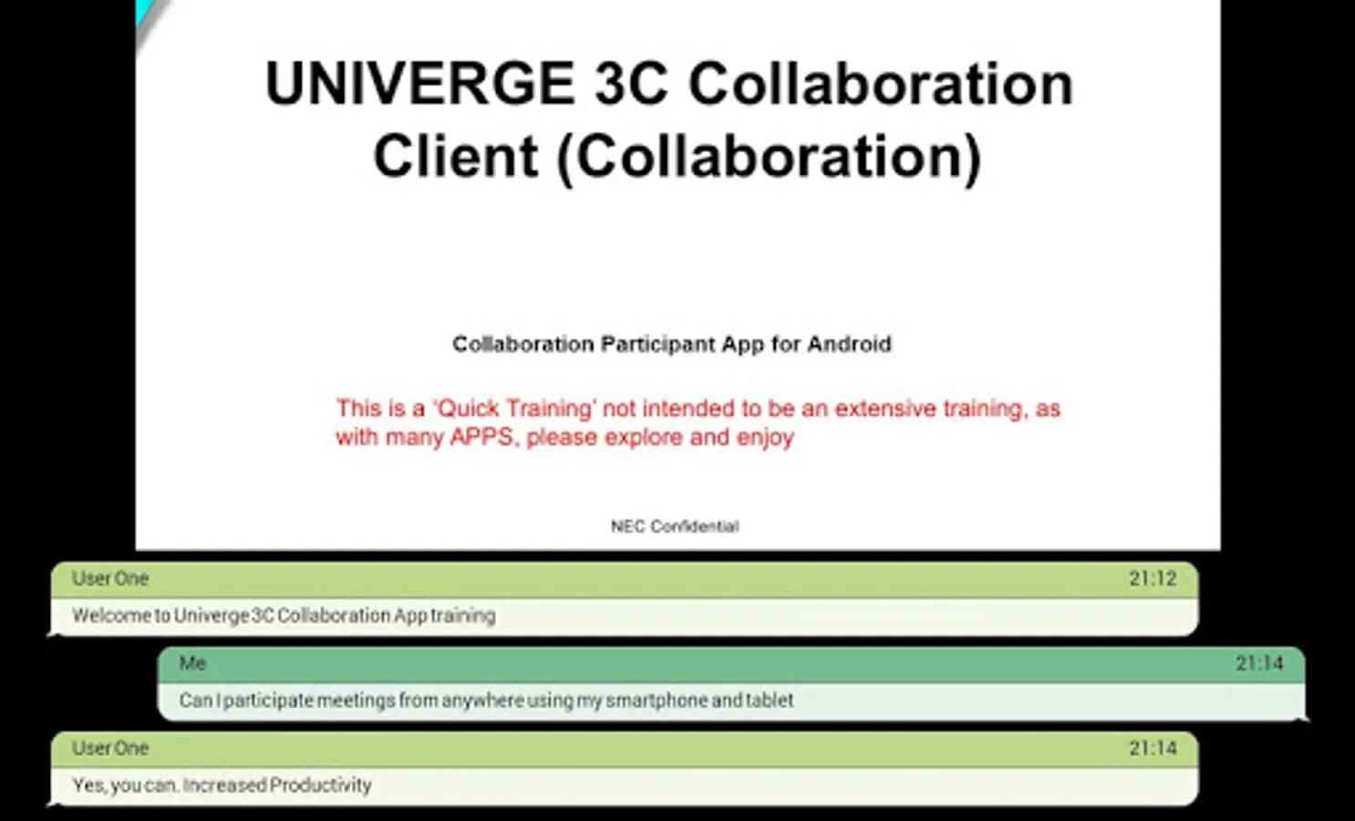 The UNIVERGE 3C Collaboration Client is a universal app for both Smart Phone and Tablet devices.