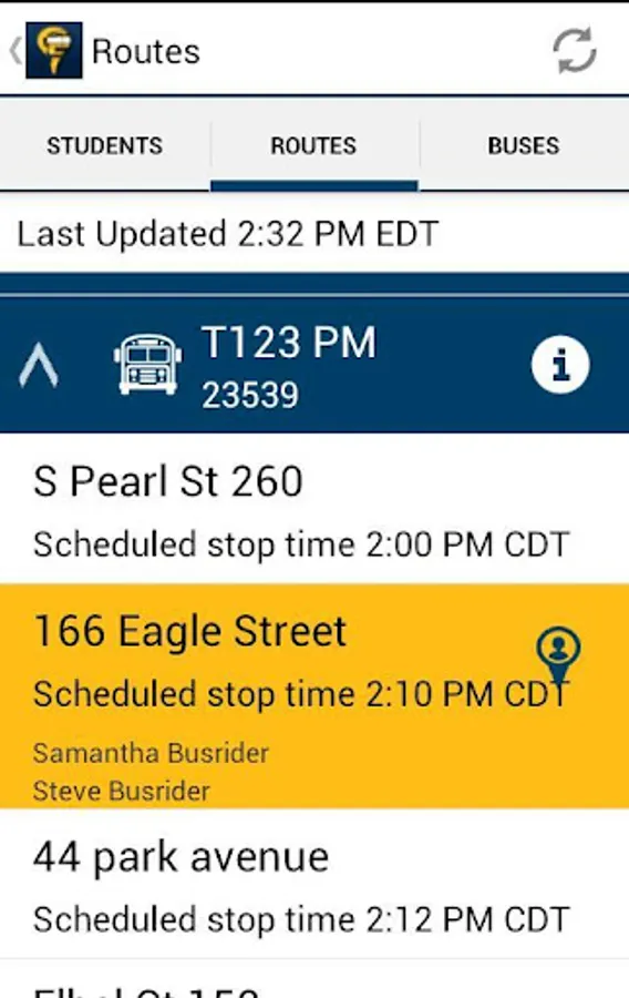 Stock Bus Tracker allows you to view any of your student’s current school bus location and information about the route in real time. On the map, you can see multiple stops along the route, including the expected arrival times for each stop. You also have the opportunity to view the information from a satellite view. Simply input the necessary information for each student.