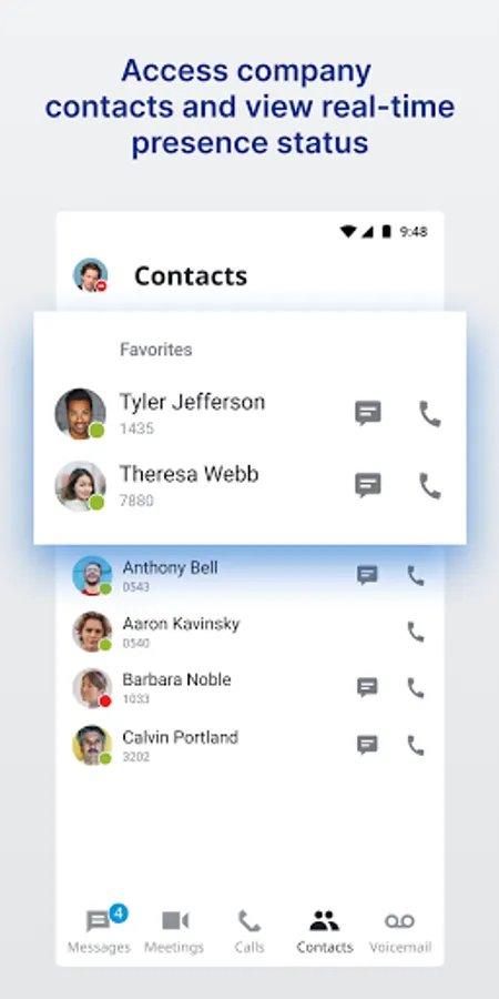 The UNIVERGE BLUE™ CONNECT mobile application transforms your mobile phone into an essential collaboration tool, making teamwork on-the-go easier than ever. Place and receive calls, see who is available, send chat and SMS messages, and manage voicemails all from one application — anytime, anywhere.