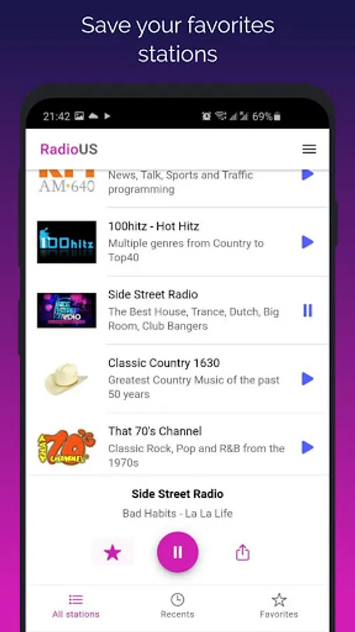 Free US Radio in the US Radio app gives you the opportunity to choose your favorite and popular American radio stations. It is very convenient to listen to the radio online thanks to its clear and simple interface. It is enough to press one button - and the radio online for free and will tirelessly entertain you as much as you want.