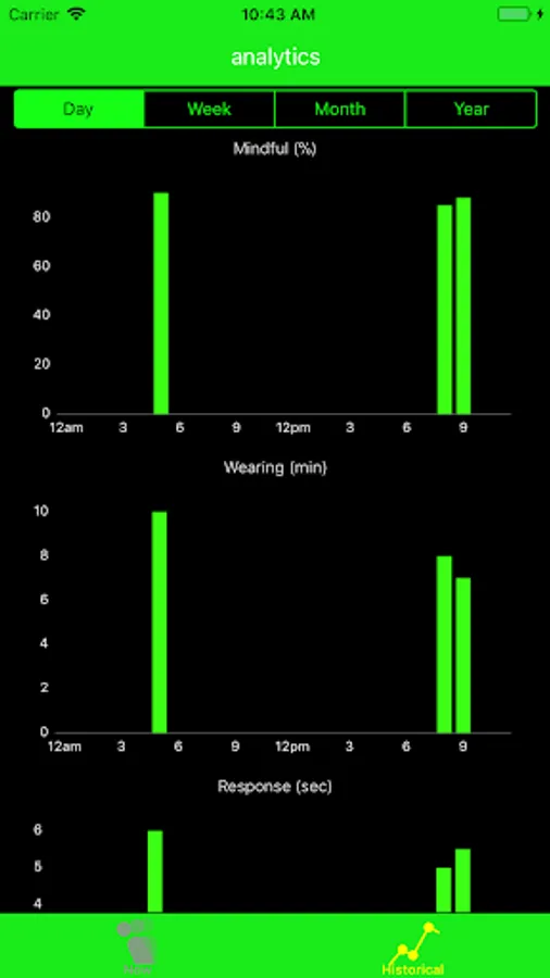 2. The report mindfulness training records, including (1) the proportion of mindfulness, (2) wearing time, (3) reaction time, and depending on the day, week, month, year four timeline statistics.