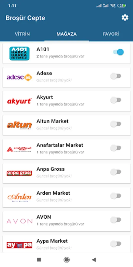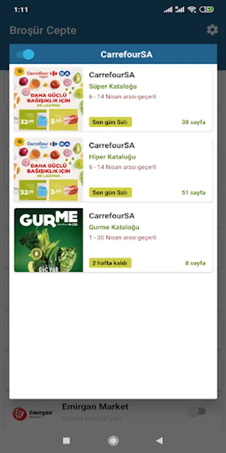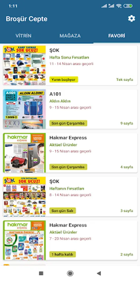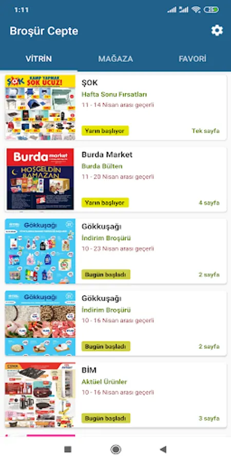 You can find the brochures of common chain markets such as A101, ŞOK, BİM, Hakmar, Hakmar Ekspres, Carrefour, Migros, Kipa, Koçtaş, Metro, Mopaş, KİM, Happy, Bizim, Özdilek in the application.