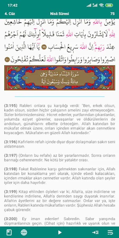 With the new version, the application gained page voice feature. We approached the end in sound adaptations. Dear Fatih Çollak Teacher's hatim audio files, which are voiced in small parts, are cut one by one and the verse positions are processed. In this context, the vocalization process takes serious time. The main reason for choosing the page-by-page method is, as you can quickly observe during the Passover, Lam-Elif at the end of the verses proceeds in conjunction with the verses. In the voices made by cutting the verse, the application loses its reading ability in this way. As soon as possible, it will primarily be studied on the times of Yâsîn, Fetih, Tebareke, Amme, Prayer and the version containing the voices of the relevant pages will be published.