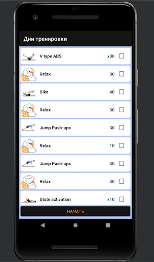 This application is suitable for training at home and in the fitness room. At Perfection, you can train at home with kettlebells, barbells, and even a massage roller - over 50 exercises in total.