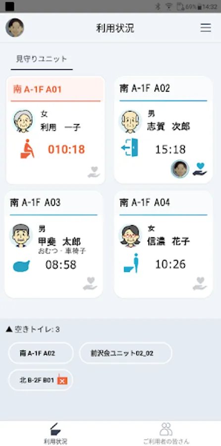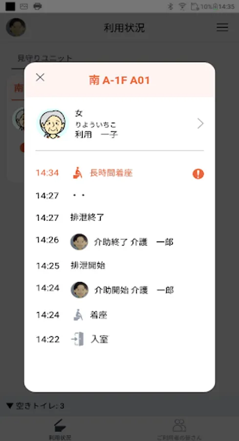 The app displays the status of entering and leaving the toilet and the start and end of excretion in real time.