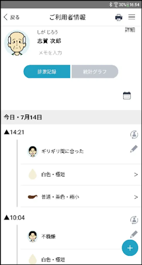 It is possible to automatically collect excretion records, refer to past excretion records, and print them as an excretion diary.