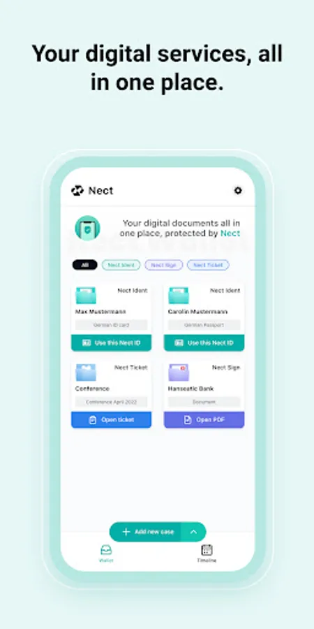 Once successfully identified, your ID document will be digitally and securely stored in the Nect Wallet. For your next identification, you can simply reuse the ID document within seconds via facial recognition. Our network of partner companies is constantly growing. So keep the Nect Wallet on your mobile phone and use your digital identity for other companies in the future - it's worth it!