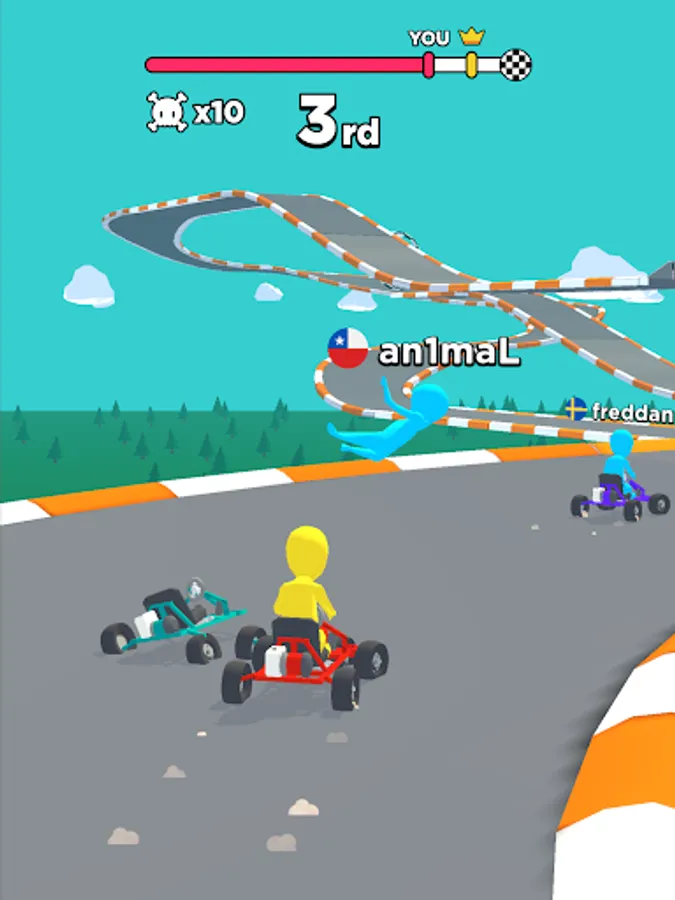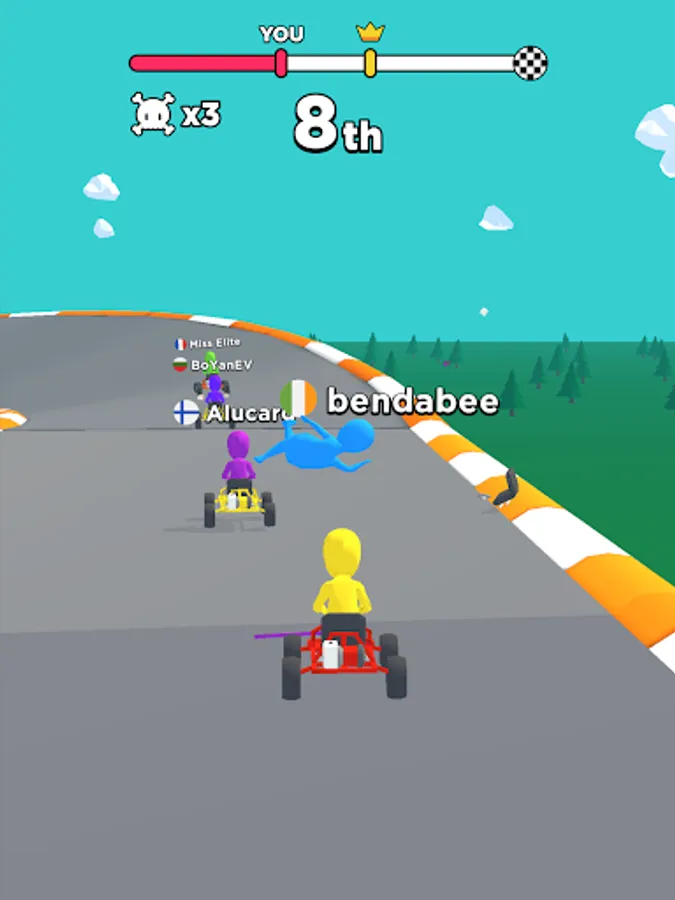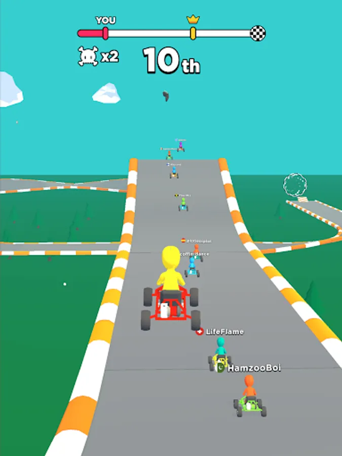 Get in your kart and destroy the other players to cross the finish line in first place! Smash the other karts to bits, whatever it takes to win!