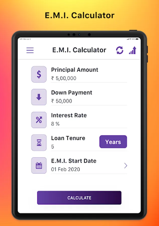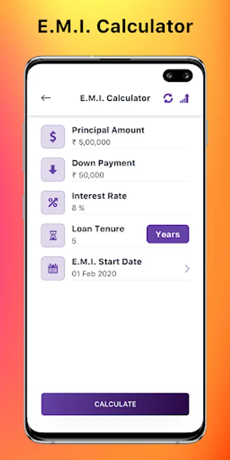 ★ EMI Calculator: It calculates the EMI for your future goals such as buying a car or a new house.
