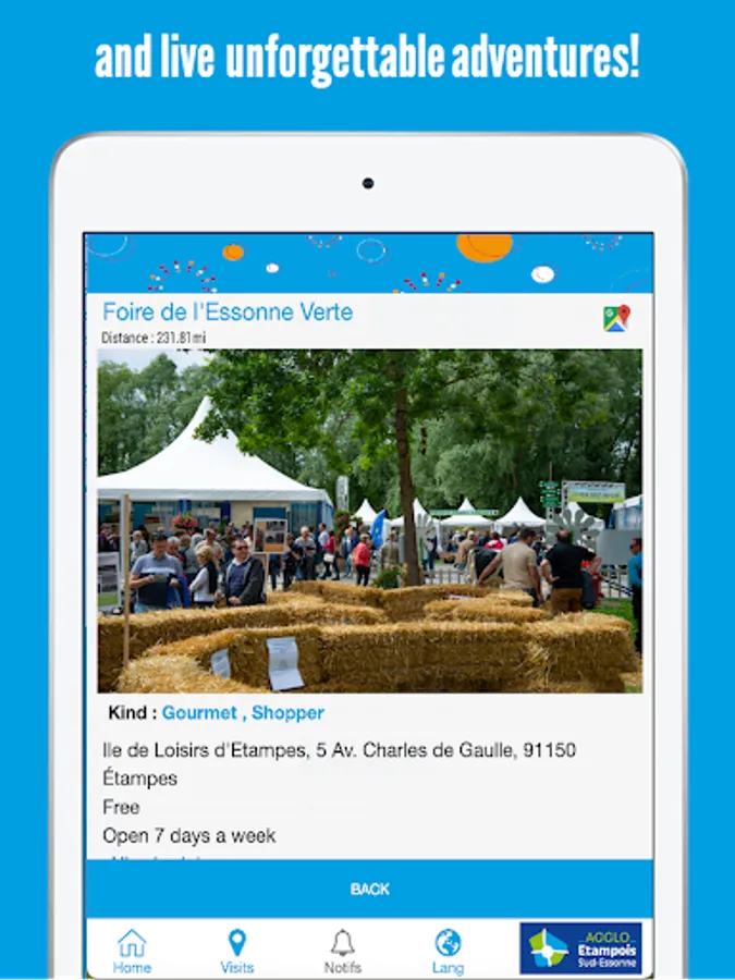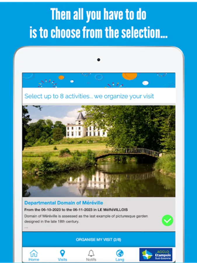 It is the essential and free application to discover the tourist, cultural and heritage riches of the territory of the Etampois Sud-Essonne Agglomeration Community (CAESE) : a rural, dynamic, friendly and unusual territory made up of 37 municipalities , To visit without moderation.
