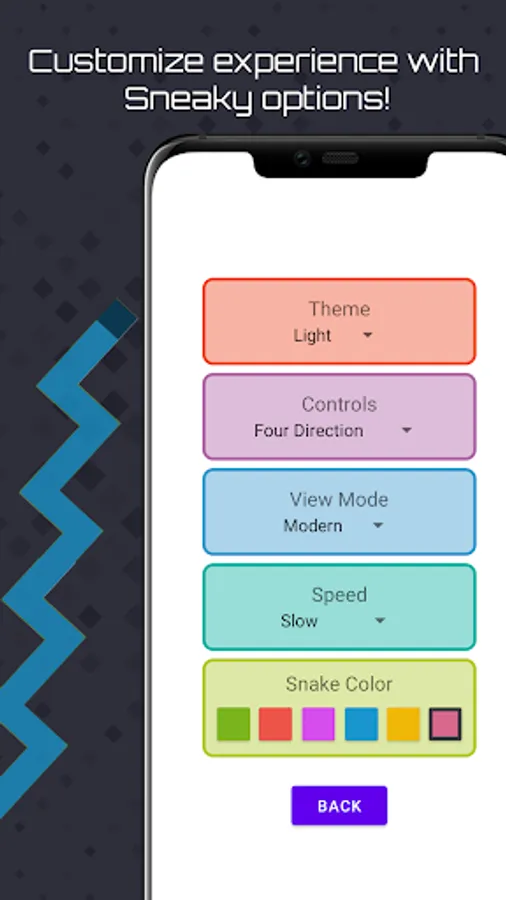 π Choose between a selection of 6 different color skins for snake