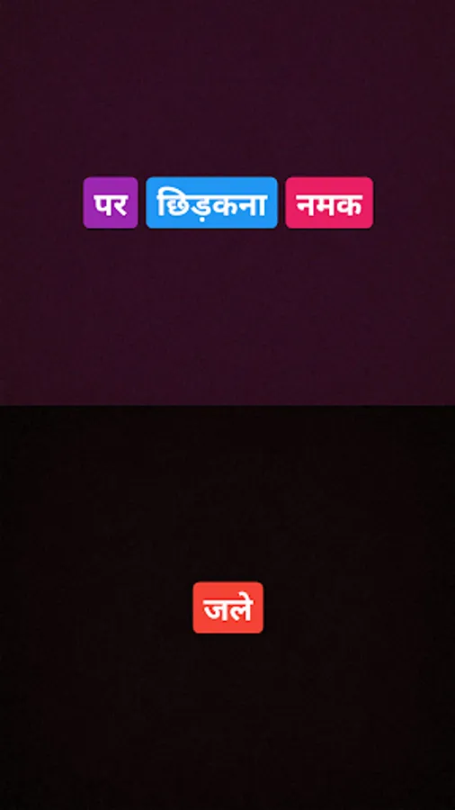 Hindi Sentence Maker consists of 510 levels. Sentences are made up of Hindi Muhavare, Lokoktiya. हिंदी शब्द जोड या हिंदी जोडपंती | Sentence Maker इस गेम में कुल ५१० लेव्हल्स मौजूद हैं, जिसमे हिंदी मुहावरे, हिंदी लोकोक्तीया और हिंदी विचार का समावेश किया गया हैं।
