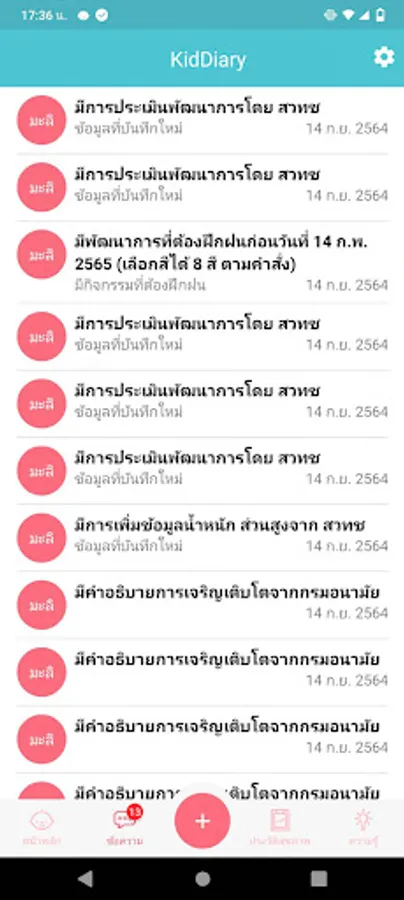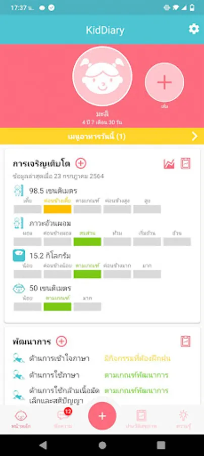 The KidDiary app was developed by the National Center for Electronic and Computer Technology (NECTEC) in conjunction with a network of pediatricians and specialists. as a tool for parents to keep track of Continuously monitor the health and development of children from birth to 19 years, as the application works through a server, allowing notifications when a child is found at risk. to give children the opportunity to see a doctor and be evaluated Ready to acknowledge the appropriate development guidelines in all aspects according to age The information recorded and displayed in this application allows doctors to diagnose faster and more accurately.