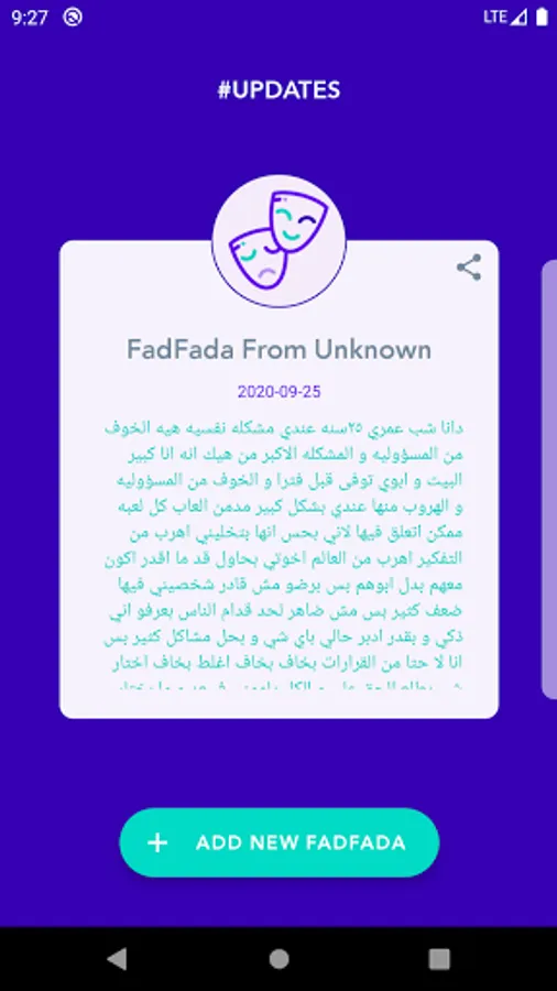 Fadfid is a place where any one can share ideas , thoughts and confessions freely ,and anonymously, fadfid have you covered , you can simply download the app and directly , freely write anything you want express or say ,you can view others posts and even share them on different social media platforms.