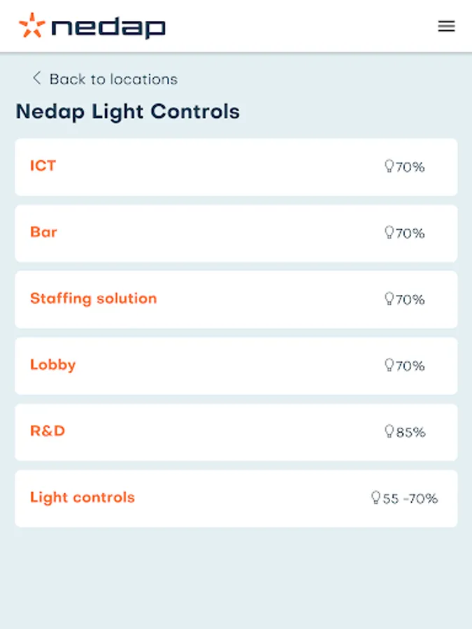 Luxon Switch allows users of Nedap’s online light management platform Luxon to quickly adjust lighting to their specific needs. With Luxon Switch it is easy to deviate from pre-configured lighting behaviour, for example when working overtime or when a higher level of lighting is required.