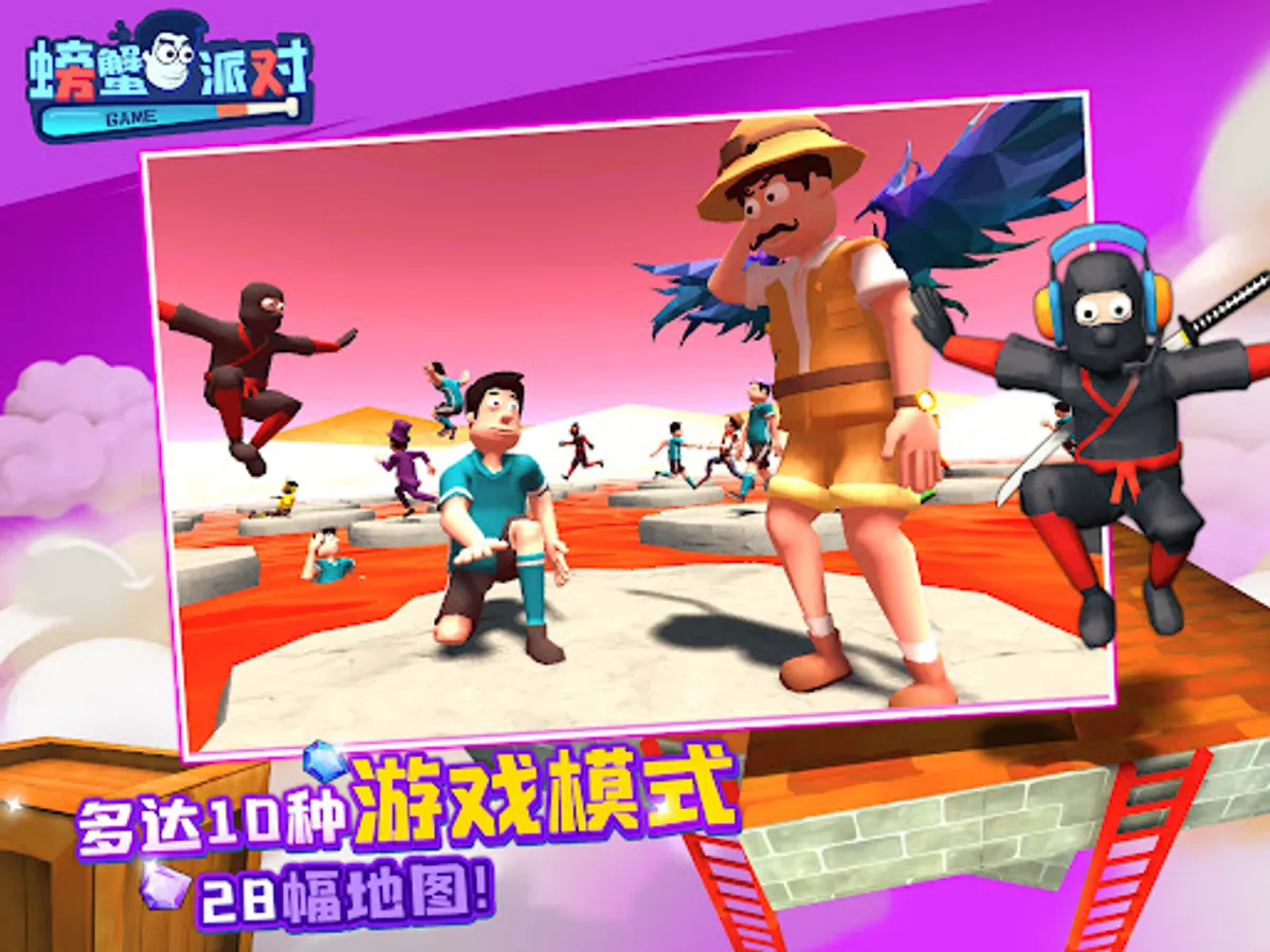There are 9 modes in game now: Red Green Light, Cross Bridge, pass bombs, Crown battle, Fill In Color, Stick Battle, King Of The Hill, Volcanic lava and Final Fight. You can also challenge to survive for 5 random days. Each room supports up to 32 people online at the same time. Enjoy the unique fun free online multiplayer survival game experience in "Stupid Game: Crab knockout" now and start your adventure party.